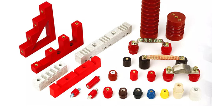 成形材料主要為BMC(Bough Moulding Compound)/ DMC(Dough Moulding Compound)不飽和樹脂。客戶可以根據自身對絕緣柱的絕緣,機械及電性能指標要求制定使用普通或加強型材料,UL材料。